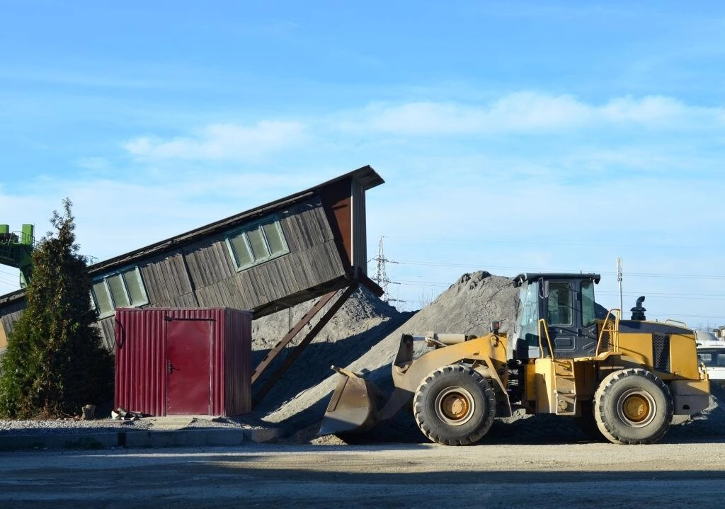 - Разгрузка: Заливка бетона на стройке.